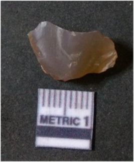 | Description / विवरण | The agate piece is translucent in appurtenance, with angular flaked edges and a bulb of percussion. The piece shows flake scars on the surface. |