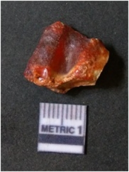| Description / विवरण | It is carnelian flake red in color, with sharp flakes edges and a small bulb of percussion owing to knapping activity. The piece has sharp flaked edges and a crypto-crystalline matrix. |