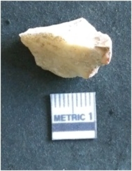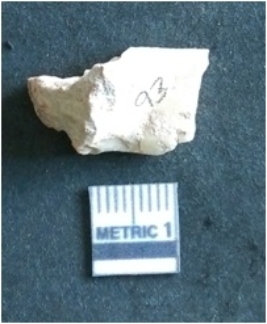 | Description / विवरण | The milky quartz flake has irregular fracture pattern and sharp flaked edges as a result of lithic knapping activity. The piece is pale, with surfacial flake scars and a bulbous end. The flake is white in color. |