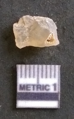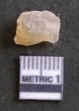 | Description / विवरण | It is a chalcedony flake, with a bulb of percussion on the ventral side. Cortex on one end. |