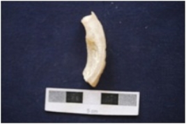 | Description / विवरण | A piece of shell bangle manufacturing waste. Some worm infestation marks. |