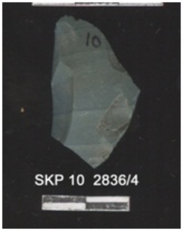| Description / विवरण | It is a fragment of agate. The ridges can be clearly seen; the striking platform and the bulb percussion can be seen. The sides are retouched. |