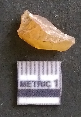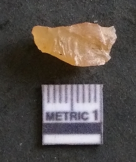 | Description / विवरण | It is a chalcedony flake, with a bulb of percussion on the ventral side. Cortex on one end. |