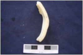 | Description / विवरण | A piece of shell bangle manufacturing waste. Some worm infestation holes. Glossy interior. |