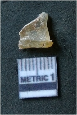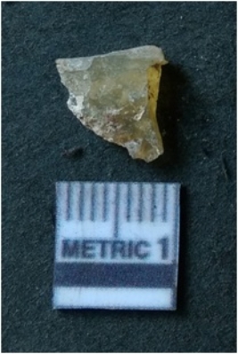 | Description / विवरण | It is chalcedony flake, translucent in appearance. The piece shows sharp pointed ends and flake scars on the surface as a result of flaking. The piece shows a bulb of percussion. |