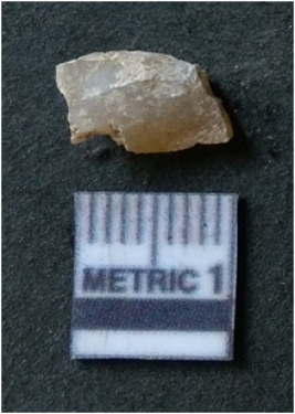 | Description / विवरण | It is chalcedony flake, translucent in appearance. The piece shows sharp pointed ends and flake scars on the surface as a result of flaking. The piece shows a bulb of percussion. |