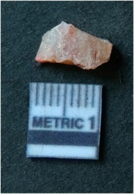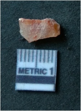 | Description / विवरण | It is chalcedony flake, translucent in appearance. The piece shows sharp pointed ends and flake scars on the surface as a result of flaking. The piece shows a bulb of percussion. |