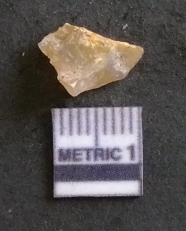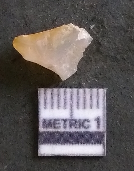 | Description / विवरण | It is a chalcedony flake, with a bulb of percussion on the ventral side. Cortex on one end. |