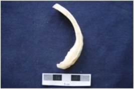 | Description / विवरण | A piece of shell bangle manufacturing waste. |