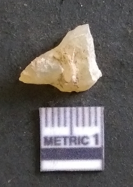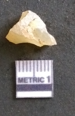 | Description / विवरण | It is a chalcedony flake, with a bulb of percussion on the ventral side. Cortex on one end. |