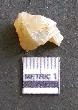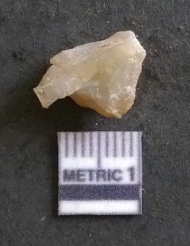 | Description / विवरण | It is a chalcedony flake, with a bulb of percussion on the ventral side. Cortex on one end. |