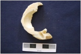 | Description / विवरण | A piece of shell bangle manufacturing waste. Many worm infestation marks. |