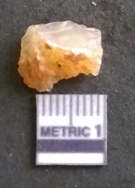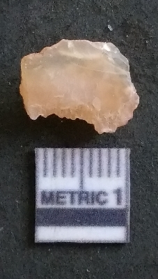 | Description / विवरण | It is a chalcedony flake, with a bulb of percussion on the ventral side. Cortex on one end. |
