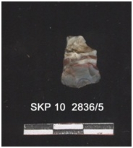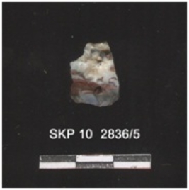 | Description / विवरण | It is a fragment of agate. The ridges can be clearly seen; the striking platform and the bulb percussion can be seen. The sides are retouched. |
