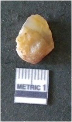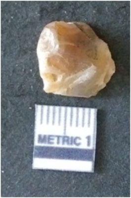 | Description / विवरण | It is chalcedony flake, translucent in appearance. The piece shows sharp pointed ends and flake scars on the surface as a result of flaking. The piece shows a bulb of percussion. |