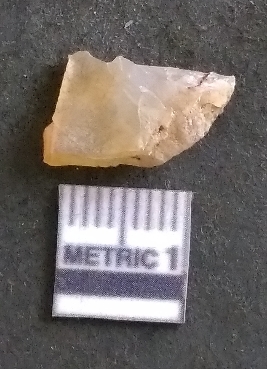 | Description / विवरण | It is a chalcedony flake, with a bulb of percussion on the ventral side. Cortex on one end. |