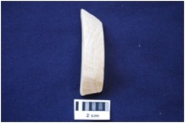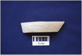 | Description / विवरण | A piece of shell bangle manufacturing waste. Glossy interior. |
