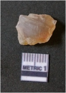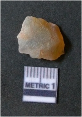 | Description / विवरण | It is chalcedony flake, translucent in appearance. The piece shows sharp pointed ends and flake scars on the surface as a result of flaking. The piece shows a bulb of percussion. |