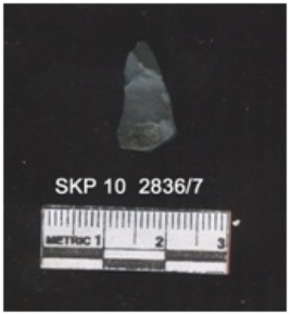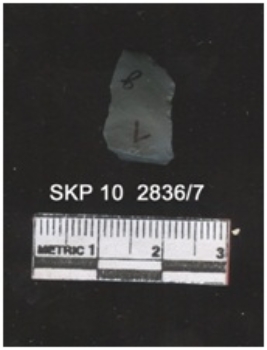 | Description / विवरण | It is a fragment of agate. The ridges can be clearly seen; the striking platform and the bulb percussion can be seen. The sides are retouched. |