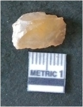 | Description / विवरण | It is chalcedony flake, translucent in appearance. The piece shows sharp pointed ends and flake scars on the surface as a result of flaking. The piece shows a bulb of percussion. |