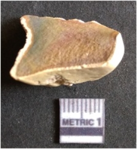 | Description / विवरण | The chert piece is dark in color, with a prominent bulb of percussion and sharp flaked edges. The piece is a part of lithic debitage or raw material for lithic knapping. The piece shows clear ripple marks and bulb of percussion. |