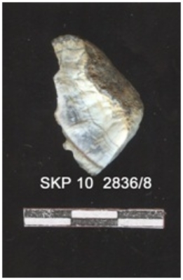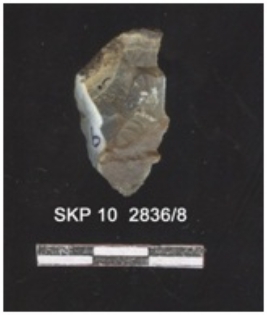 | Description / विवरण | It is a fragment of agate. The ridges can be clearly seen; the striking platform and the bulb percussion can be seen. The sides are retouched. |