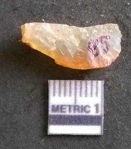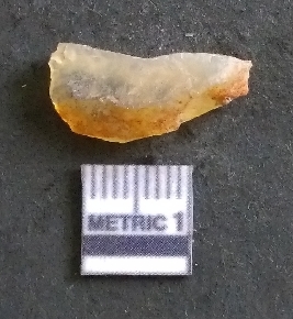 | Description / विवरण | It is a chalcedony flake, with a bulb of percussion on the ventral side. Cortex on one end. |