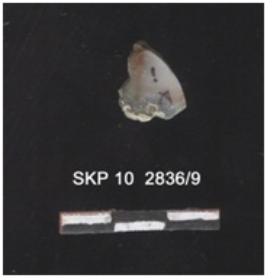 | Description / विवरण | It is a fragment of agate. The ridges can be clearly seen; the striking platform and the bulb percussion can be seen. The sides are retouched. |