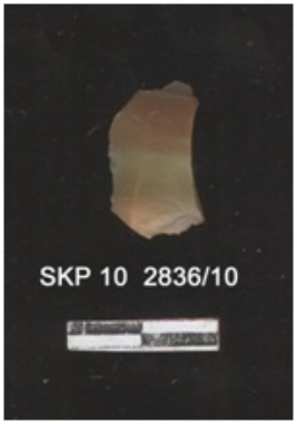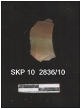 | Description / विवरण | It is a fragment of agate. The ridges can be clearly seen; the striking platform and the bulb percussion can be seen. The sides are retouched. |