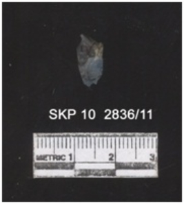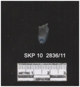 | Description / विवरण | It is a fragment of agate. The ridges can be clearly seen; the striking platform and the bulb percussion can be seen. The sides are retouched. |