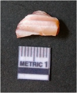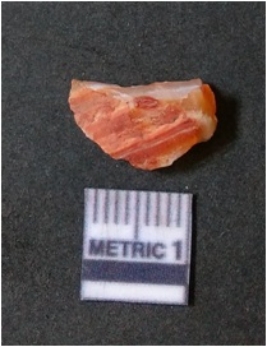 | Description / विवरण | The banded agate piece is crystalline in nature, with a smooth fracture pattern and visible bands on the flaked sides. The piece is pale in color and has sharp flaked ends. |