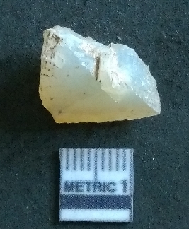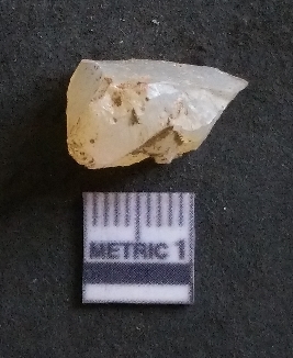 | Description / विवरण | It is a chalcedony flake, with a bulb of percussion on the ventral side. Cortex on one end. |