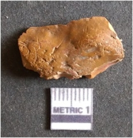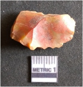 | Description / विवरण | The flake has sharp flake scars and positive bulb of percussion as a result of flaking. The piece is crypto crystalline in nature with sharp edges and dark in color. The flake is of primary nature. |
