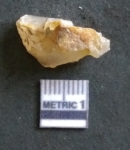 | Description / विवरण | It is a chalcedony flake, with a bulb of percussion on the ventral side. Cortex on one end. |
