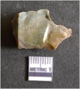 | Description / विवरण | The flake has sharp flake scars and positive bulb of percussion as a result of flaking. The piece is crypto crystalline in nature with sharp edges and dark in color. The flake is of primary nature. |