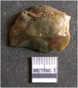 | Description / विवरण | The flake has sharp flake scars and positive bulb of percussion as a result of flaking. The piece is crypto crystalline in nature with sharp edges and dark in color. The flake is of primary nature. |