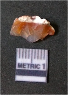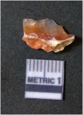 | Description / विवरण | It is chalcedony flake, translucent in appearance. The piece shows sharp pointed ends and flake scars on the surface as a result of flaking. The piece shows a bulb of percussion. |