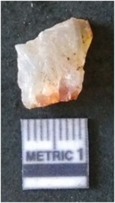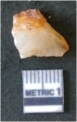 | Description / विवरण | It is chalcedony flake, translucent in appearance. The piece shows sharp pointed ends and flake scars on the surface as a result of flaking. The piece shows a bulb of percussion. |
