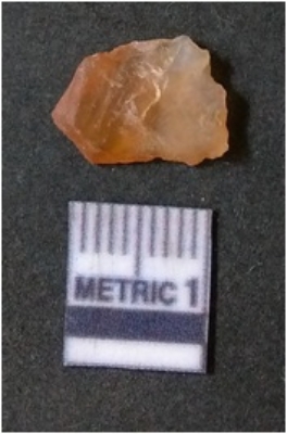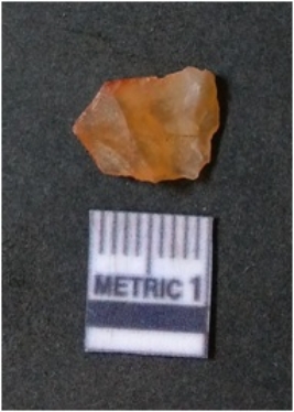 | Description / विवरण | It is chalcedony flake, translucent in appearance. The piece shows sharp pointed ends and flake scars on the surface as a result of flaking. The piece shows a bulb of percussion. |