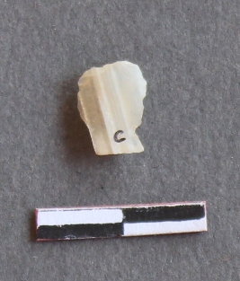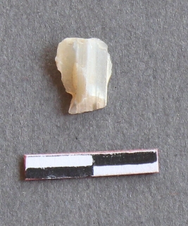 | Description / विवरण | It is milky quartz fragment, with cortex on one end. Flake ridges on the surface. It has calcium impurities. |