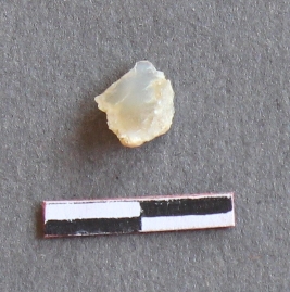 | Description / विवरण | It is chalcedony fragment, with cortex on one side. Flake ridges on the surface sharp edges with pointed end. |
