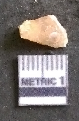 | Description / विवरण | It is a chalcedony flake, with a bulb of percussion on the ventral side. Cortex on one end. |