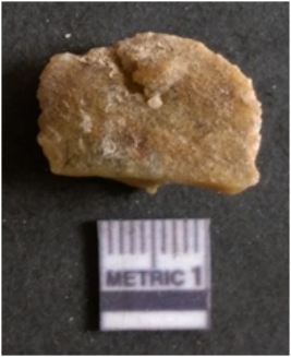 | Description / विवरण | The has a sharp edges as a result of lithic knapping and rough crescent shape. The piece is crypto crystalline in nature and translucent in appearance. |