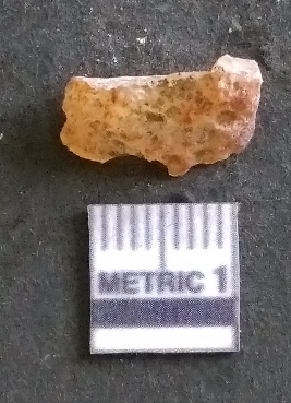 | Description / विवरण | It is a chalcedony flake, with a bulb of percussion on the ventral side. Cortex on one end. |