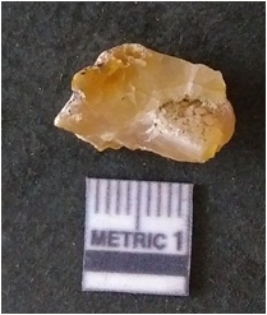 | Description / विवरण | It is chalcedony flake, translucent in appearance. The piece shows sharp pointed ends and flake scars on the surface as a result of flaking. The piece shows a bulb of percussion. |