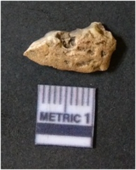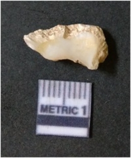 | Description / विवरण | The milky quartz flake has irregular fracture pattern and sharp flaked edges as a result of lithic knapping activity. The piece is pale, with surfacial flake scars and a bulbous end. The flake is white in color. |