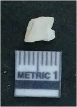 | Description / विवरण | The flake has irregular fracture pattern and sharp flaked edges as a result of lithic knapping activity. The piece is pale, with surfacial flake scars and a bulbous end. |