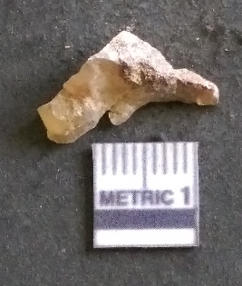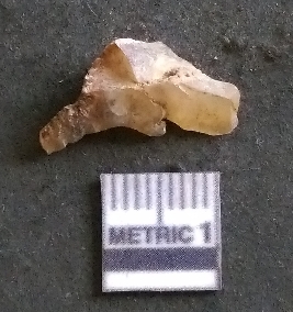| Description / विवरण | It is a chalcedony flake, with a bulb of percussion on the ventral side. Cortex on one end. |