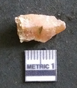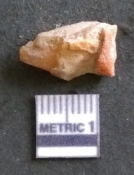 | Description / विवरण | It is a chalcedony flake, with a bulb of percussion on the ventral side. Cortex on one end. |
