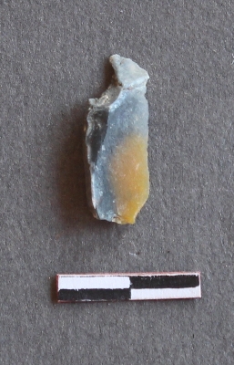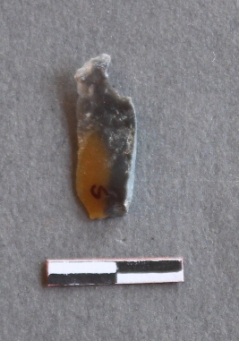 | Description / विवरण | It is jasper fragment, with cortex on one end. Flake ridges on the surface. |